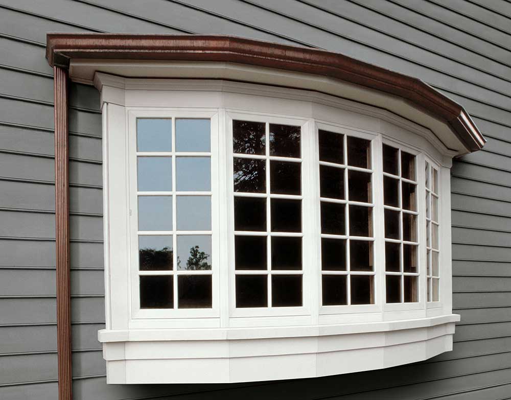 A bay window is a window space projecting outward from the main walls of a building and forming a bay in a room. A bay window may be combination of different types of windows and it adds a great look at the exterior wall.